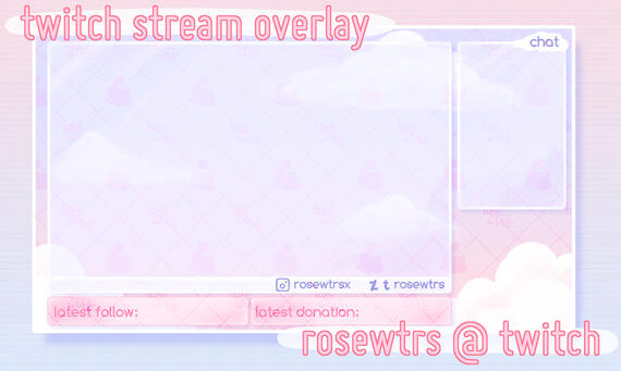 window/screen capture, chat box, social media handles, most recent follow/subscriber, most recent donator, webcam frameadditional screens for breaks, just chatting, etc. can also be provided!
