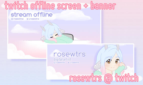 includes channel name + 1 soft-shaded half body illustration. offline screen can also be edited for "stream starting" and "stream ending" screens at no extra charge.